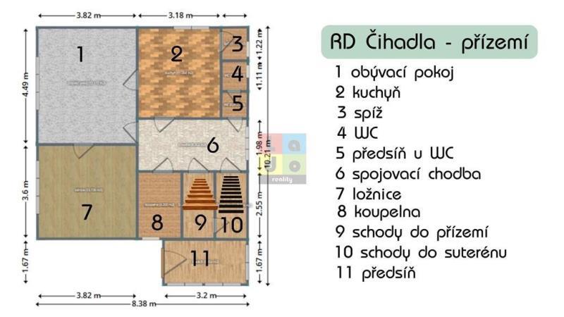 Nabízíme Vám k prodeji cihlový rodinný dům o dispozici 3+1, s garáží a kolnou na pozemku o celkové výměře 996 m2 v obci Stará Lysá Čihadla, okr. Nymburk. Dům byl postaven a zkolaudován v roce 1960 a je celý podsklepený, celkem 60m2. Okna dřevěná špaletová, střecha stanová, krytina bobrovky. Ve zvýšeném přízemí se nachází spojovací chodba, kuchyň se spíží, obývací pokoj, ložnice, koupelna, samostatné WC s předsíňkou a schody na půdu. Na půdě se nachází jeden další pokoj, chodba a dva půdní prostory. Do domu zavedeny elektřina (původní hliník), voda z vlastní studny a napojeno na jímku. Dům má dva komíny. Vytápění kotlem na tuhá paliva. Pro více informací a prohlídku volejte svého makléře.