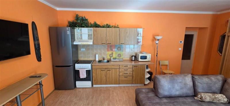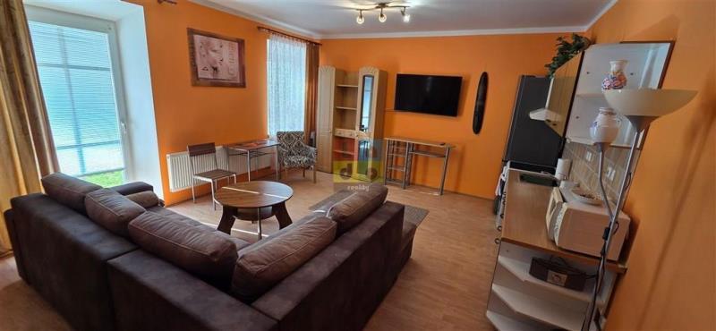 Prostorný byt je situován v přízemí dvoupodlažního domu a nabízí dostatek soukromí a komfortu. K dispozici je obývací pokoj spojený s kuchyňským koutem, který je vybaven kuchyňskou linkou, spotřebiči včetně samostatného elektrického sporáku, mikrovlnné trouby a lednice s mrazákem. Součástí bytu je také pračka, což ocení každý, kdo hledá komfort bez kompromisů.